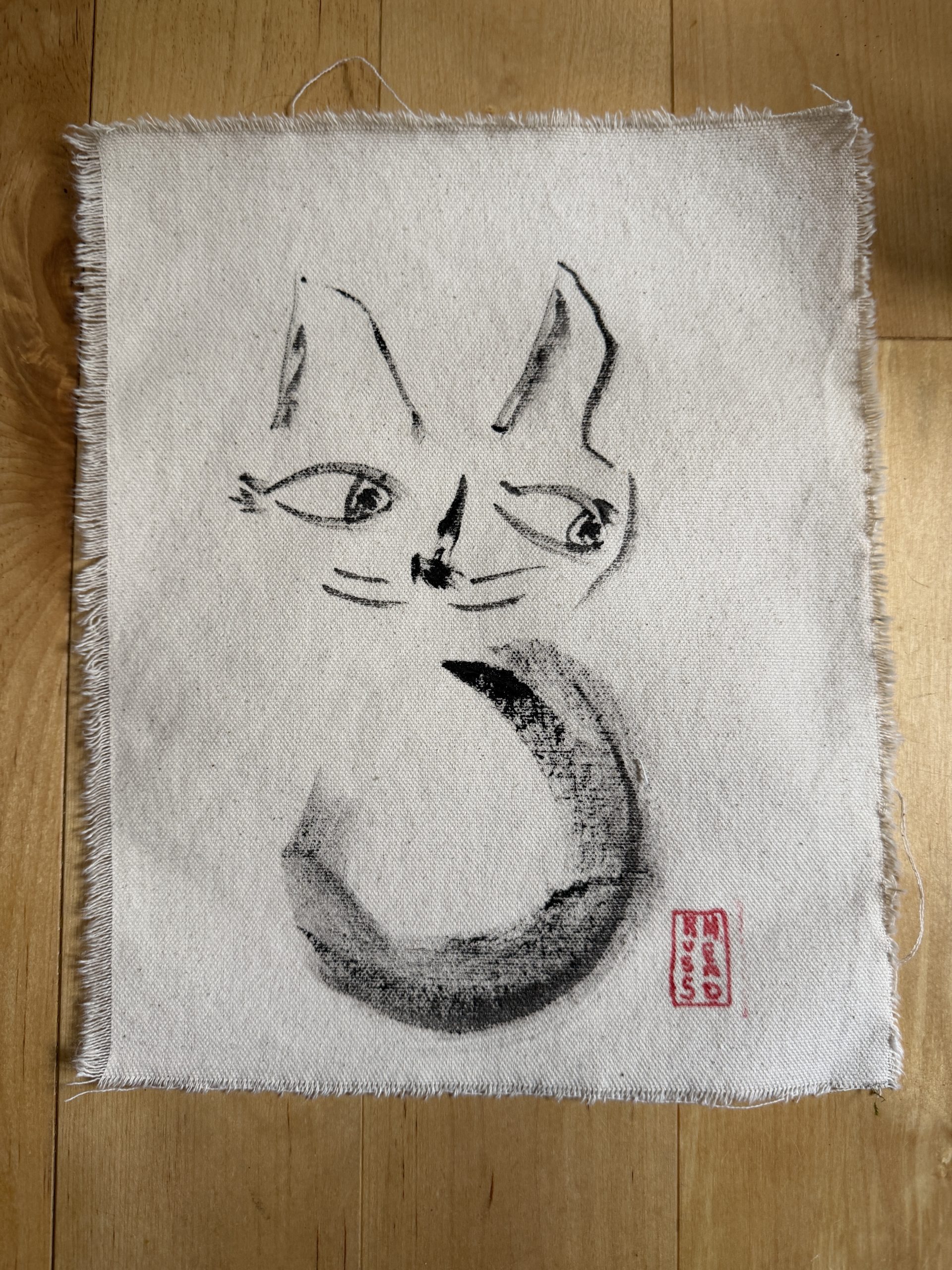 8″x10″ cat (with a personality). Ink on raw canvas. Hand-painted for you.